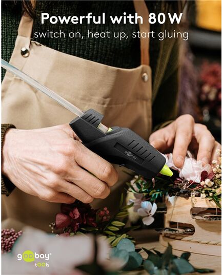 GOOBAY πιστόλι θερμοκόλλησης σιλικόνης 77824 με 2x ράβδους σιλικόνης 11mm, 80W, μαύρο