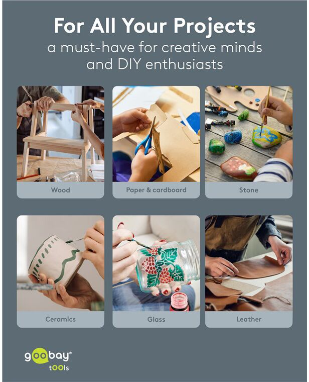 Μπορούν να χρησιμοποιηθούν με διάφορα υλικά όπως ξύλο, γυαλί, κεραμικά, πλαστικά, δέρμα & χαρτόνι.