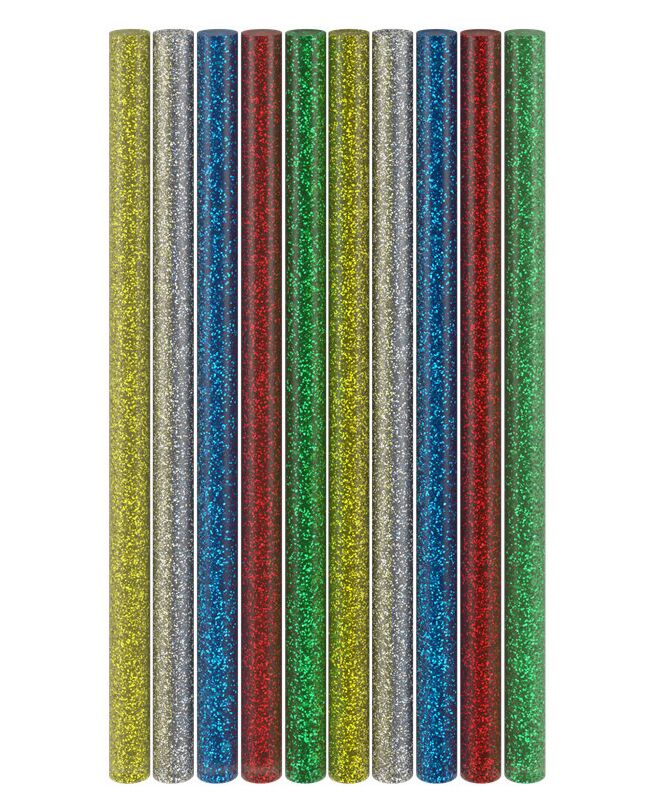 Η συσκευασία περιλαμβάνει 10 ράβδους σιλικόνης glitter σε διάφορα χρώματα.