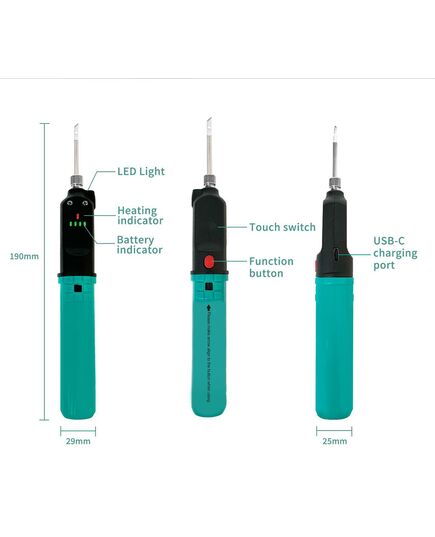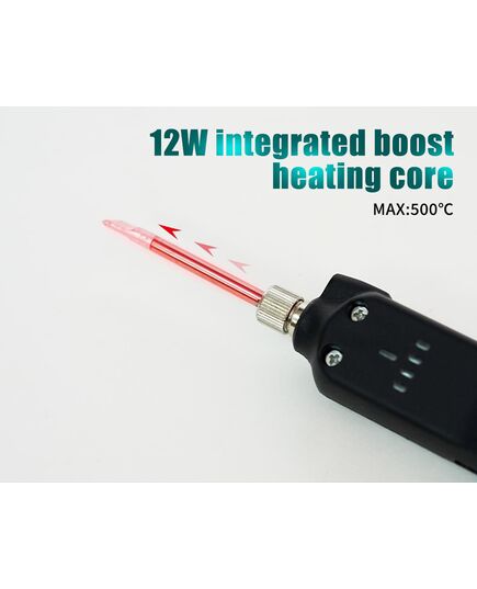 Ασύρματο, επαναφορτιζόμενο κολλητήρι 12W της PROSKIT, ικανό να αναπτύξει μέγιστη θερμοκρασία στους 500 °C.