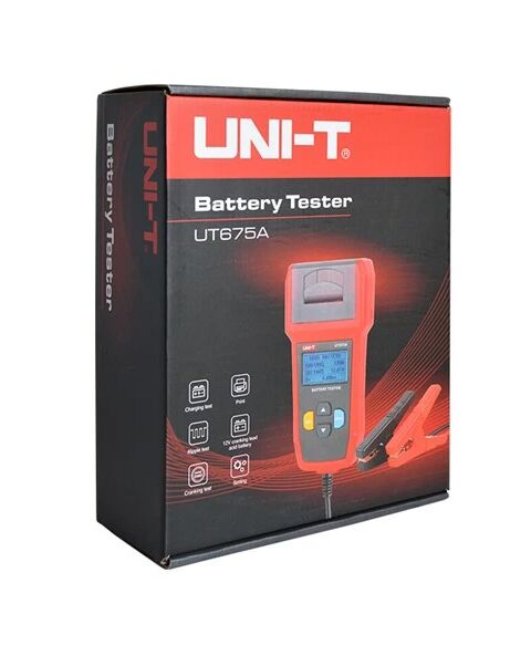 Το tester μπαταρίας UT675A μπορεί να χρησιμοποιηθεί για την ανάλυση της υγείας των μπαταριών οχημάτων. Είναι κατάλληλο για μπαταρίες χωρητικότητας από 30Ah έως 200Ah. Μπορεί να εντοπίσει γρήγορα και με ακρίβεια κοινά σφάλματα που προκαλούνται από την μπαταρία. Επιπλέον, υποστηρίζει σύνδεση μέσω καλωδίου USB και ενσωματώνει εκτυπωτή για την εκτύπωση αναφορών.