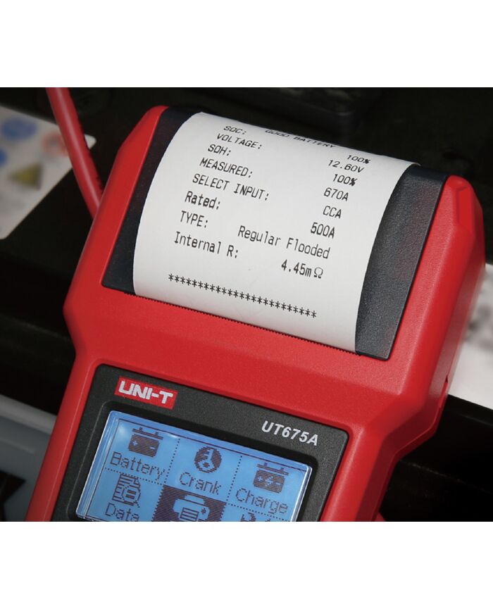 UNI-T tester μπαταρίας αυτοκινήτων UT675A με κροκοδειλάκια & εκτυπωτή
